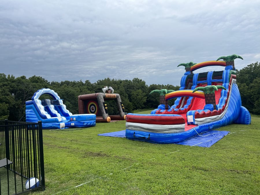 It allows you to pair together a large slide, small slide or combo, along with one of our games! This package also includes generators to power all inflatables included.