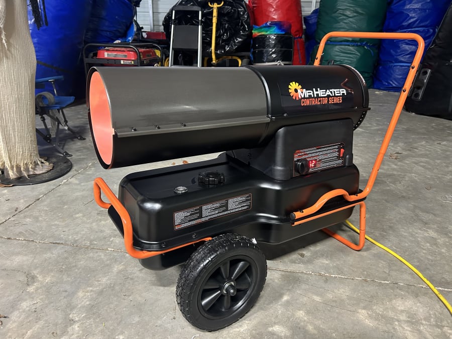 Whether you are using it in a garage or on the jobsite, this 140,000 BTU Forced Air Kerosene heater by Mr. Heater is up for the task. with jobsite ready, powder-coated tubular steel handles and flat-free rubber tires, a split upper shell designed for maintenance, you can expect a long life and faithful service from your Mr. Heater Forced Air Kerosene. Equipped with high output motors and glove-friendly controls, you can't go wrong. Heating up to 3,500 sq. ft. controlled by a factory installed thermostat with LED readout for room and set temps. This unit effortlessly heats up a lot of space quickly. It is equipped with a high limit safety switch and a photo CAD cell to shut the unit off in unsafe conditions. This kerosene heater has all the versatility and safety features the jobsite requires.