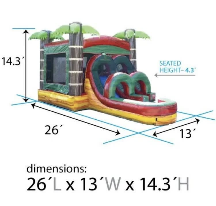 This bounce combo is amongst our most popular inflatables! It has a neutral theme so it can blend with almost any of your events! This combo has a bounce area, and a water slide! The slide can be used as a dry slide if preferred!
