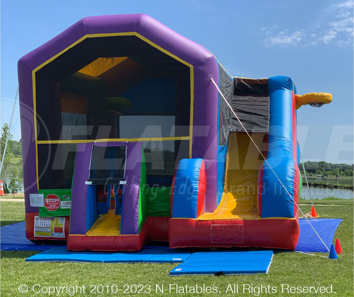 This bounce combo is amongst our most popular inflatables! It has a neutral theme so it can blend with almost any of your events! This combo has a bounce area and dry slide!