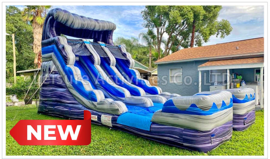A 16' Dual Lane Slide that can be used dry or as a water slide is sure to be fun for all ages!