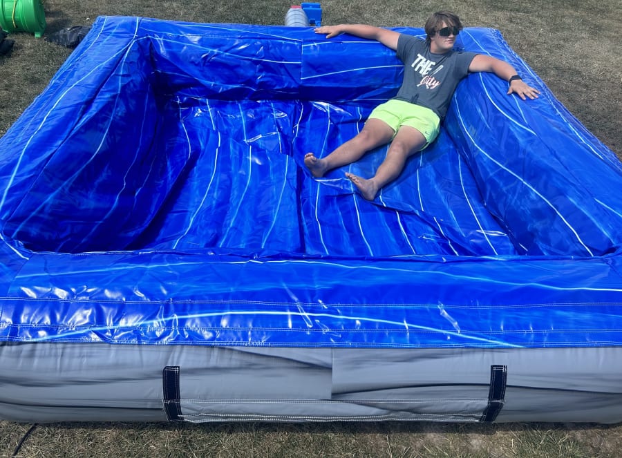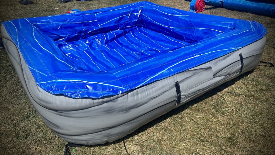 This is a 10’x10’ Pool. It is 20” tall which is just right to accommodate all ages! This is a great ADD-ON item to accommodate the kids that just want to play in a pool while the others are using the combo or water slide!