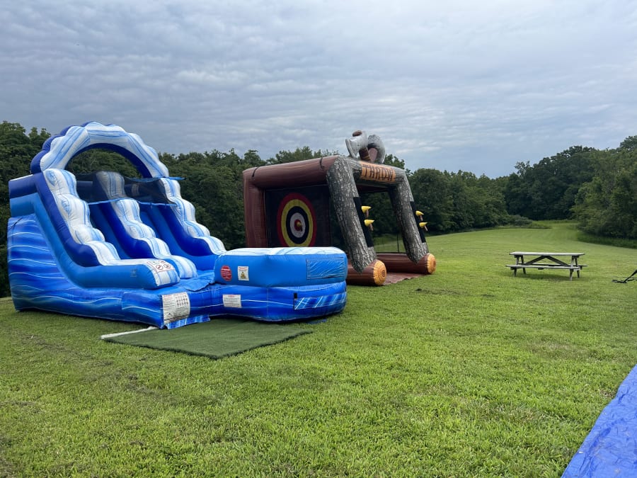 It allows you to pair together a large slide, small slide or combo, along with one of our games! This package also includes generators to power all inflatables included.